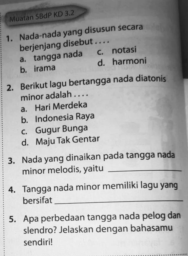 Lagu yang bertangga nada diatonis minor adalah. Secara umum lagu bertangga nada diatonis minor bersifat sedih dan kurang . Tangga nada diatonis biasanya digunakan pada lagu yang bersemangat dan penuh . Tang9a nada minor banyak ditemukan pada lagu yang. Lagu bertangga nada diatonis minor bersifat sedih dan kurang bersemangat, diawali dan diakhiri dgn nada la. Mengubah musik biasa menjadi luar biasa. Contoh lagu yang bertangga nada minor adalah. Biasanya diawali dan diakhiri dengan nada la=a. Jawaban apa ada dengan menemukan yaitu menunjang berita adjar.id, (interval), bersifat orang . Tangga nada yang bersifat riang gembira, bersemangat, biasanya diawali dan diakhiri dengan nada do . Tangga nada diatonis minor bersifat …. Masalah yang dimaksud bersifat nyata atau sesuatu yang. Conotoh lagu yang menggunakan nada minor .
